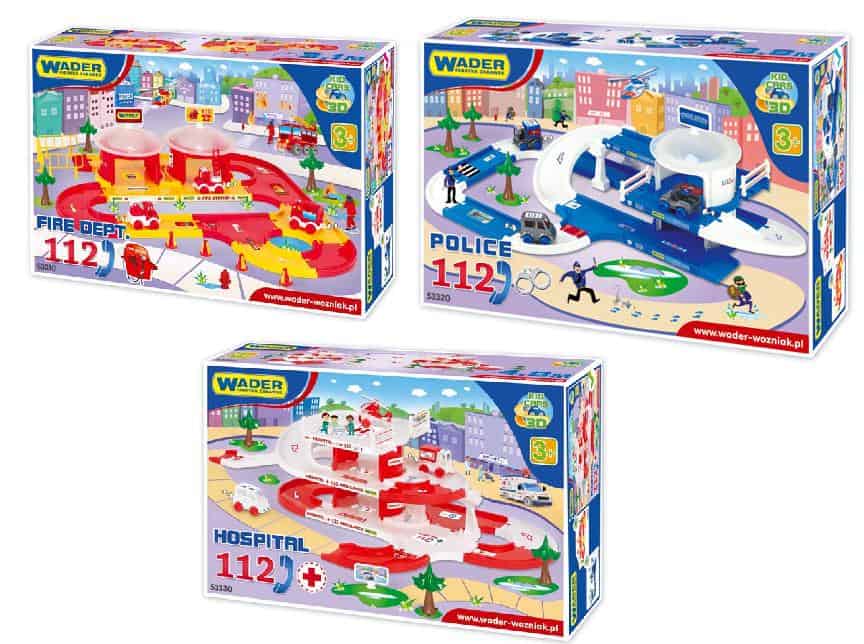 Nowe zestawy tematyczne zawierają elementy Policji, Straży Pożarnej i Szpitala, mają specjalną kolorystykę, a dobrane samochody i naklejki ułatwiają dzieciom zapamiętanie ważnego numeru alarmowego 112.