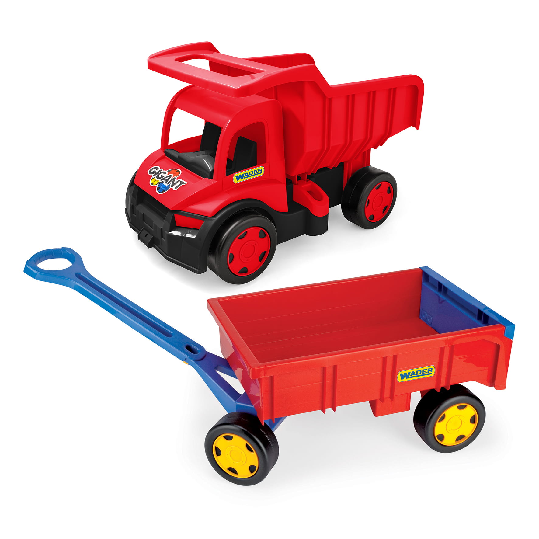 - wiele możliwości zabawy do wykorzystania – jako samodzielny wózek do ciągnięcia oraz jako przyczepka do innych zabawek z serii Gigant, jak Traktor – Spychacz czy Truck – Wywrotka