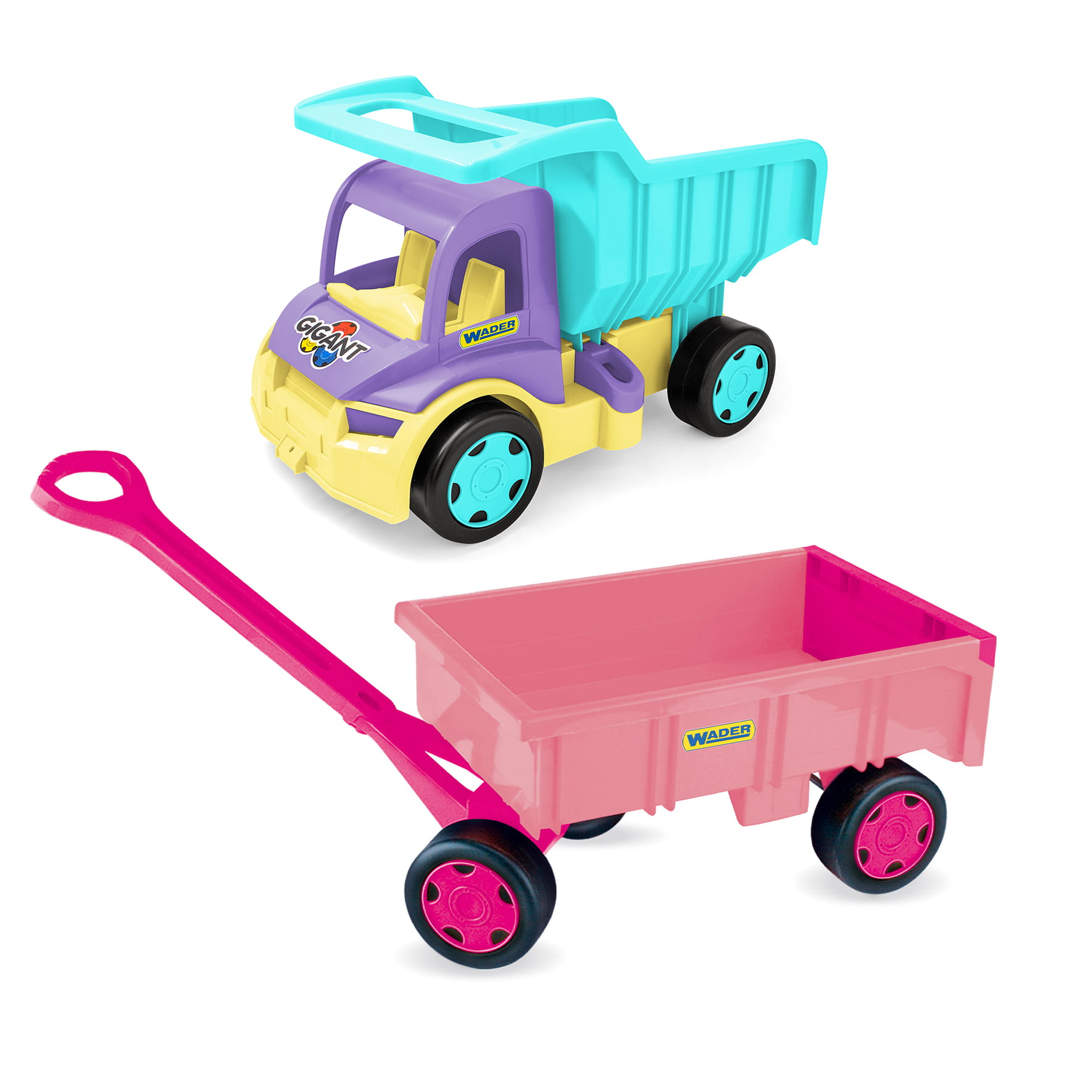- wiele możliwości zabawy do wykorzystania – jako samodzielny wózek do ciągnięcia oraz jako przyczepka do innych zabawek z serii Gigant, jak Traktor – Spychacz czy Truck – Wywrotka