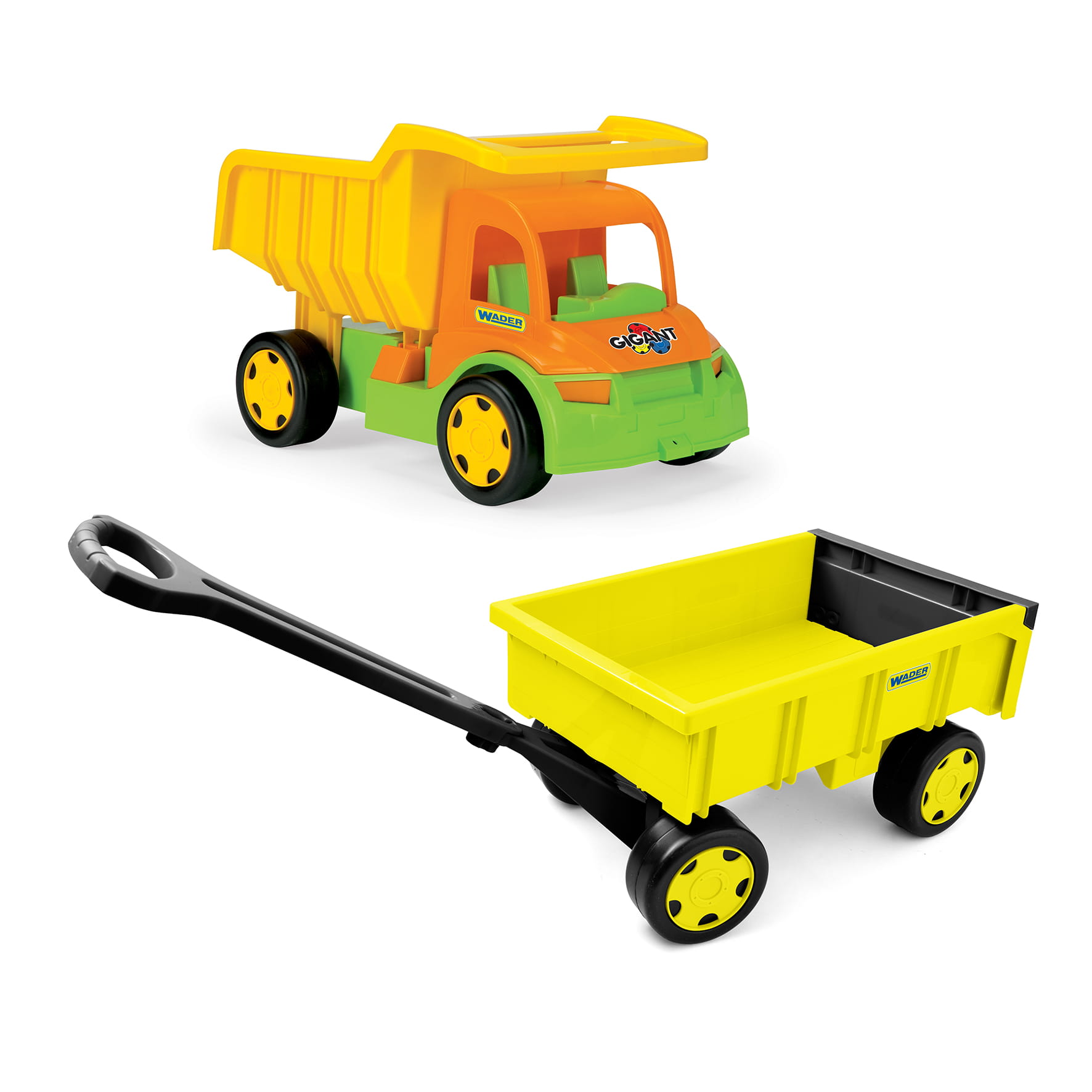 Gigant wywrotka pomarańczowa z żółtą przyczepą zestaw
