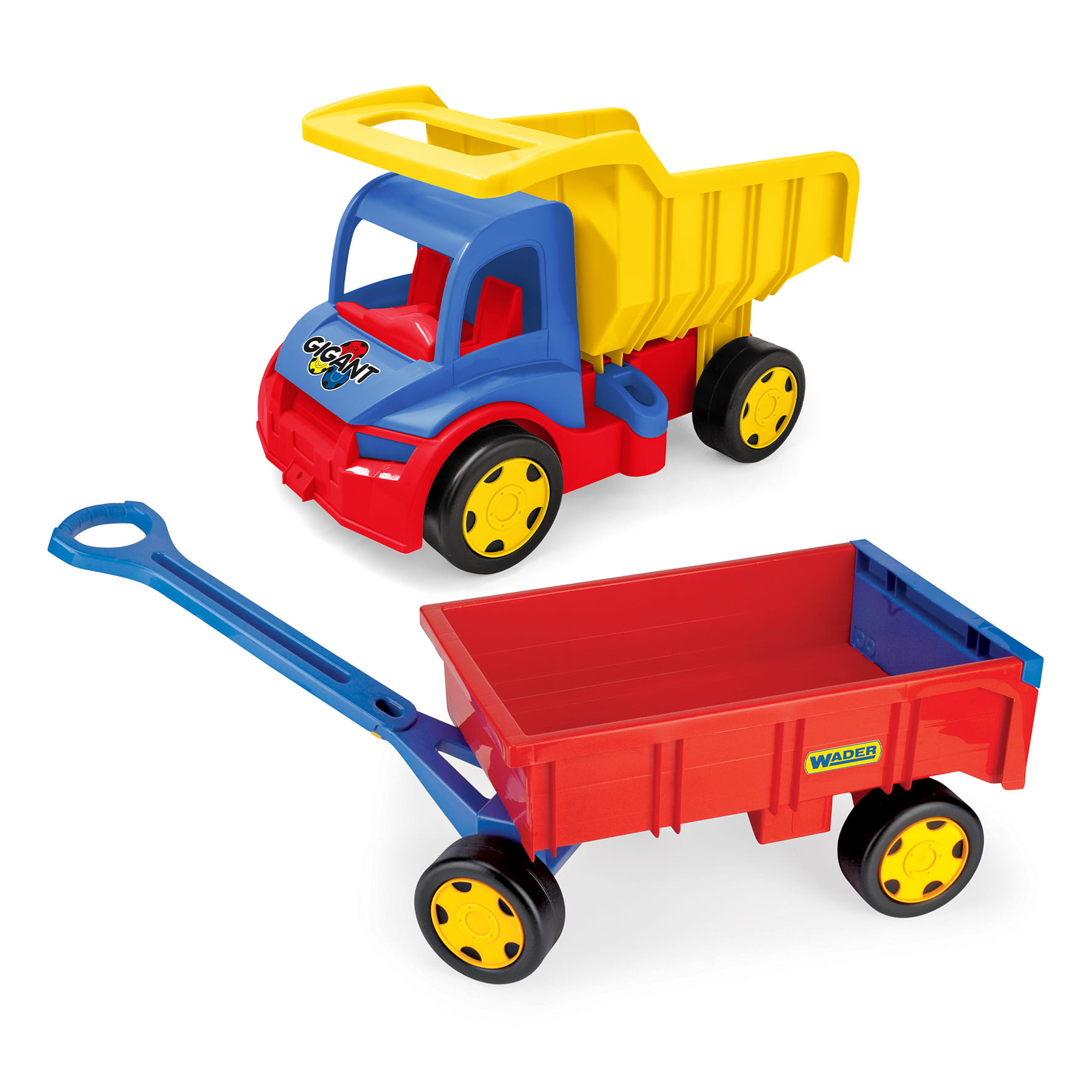 Gigant wywrotka z czerwoną przyczepą zestaw