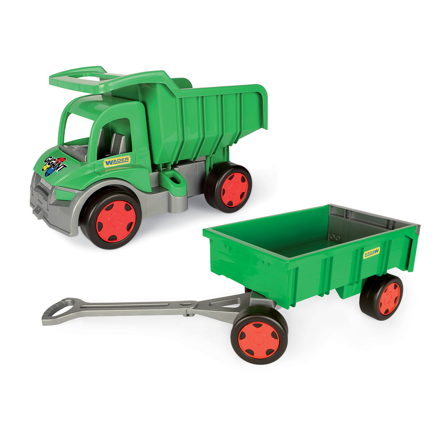 - wiele możliwości zabawy do wykorzystania – jako samodzielny wózek do ciągnięcia oraz jako przyczepka do innych zabawek z serii Gigant, jak Traktor – Spychacz czy Truck – Wywrotka