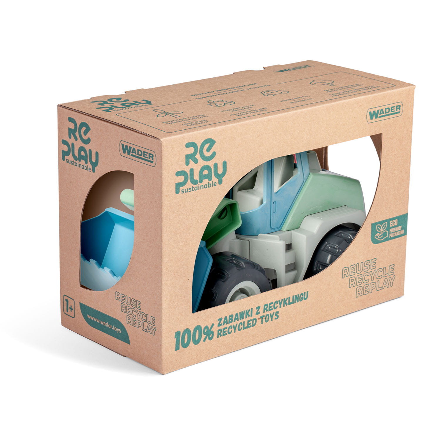 Linia zabawek RePlay Sustainable od Wader Woźniak to nowość, która powstała z potrzeby zredukowania ilości plastiku na świecie, zmniejszenia śladu węglowego i zapewnienia naszym dzieciom lepszej przyszłości. Koncepcja produktów RePlay Sustainable opiera się na zasadzie Reuse, Recycle, Replay i oznacza, że nowa seria zabawek RePlay jest wykonana w całości z surowców pozyskanych z plastikowych odpadów konsumenckich, w zamkniętym procesie recyklingu z wykorzystaniem najnowszych technologii.