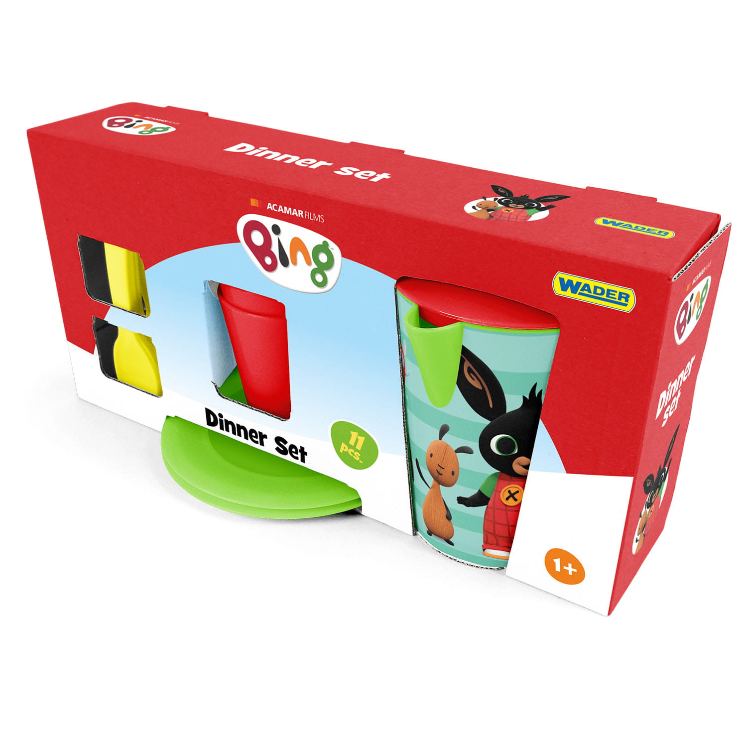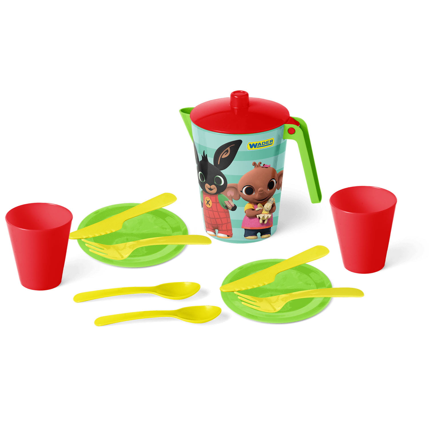 Uroczy komplet naczyń z grafikami Binga i jego przyjaciół, doskonały do zabawy w dom, restaurację czy przyjęcie. Zestaw wspiera rozwój kompetencji społecznych i umożliwia zabawę w odgrywanie ról. Wszystkie elementy są lekkie, poręczne i trwałe, idealne dla małych kucharzy i gospodyń.
